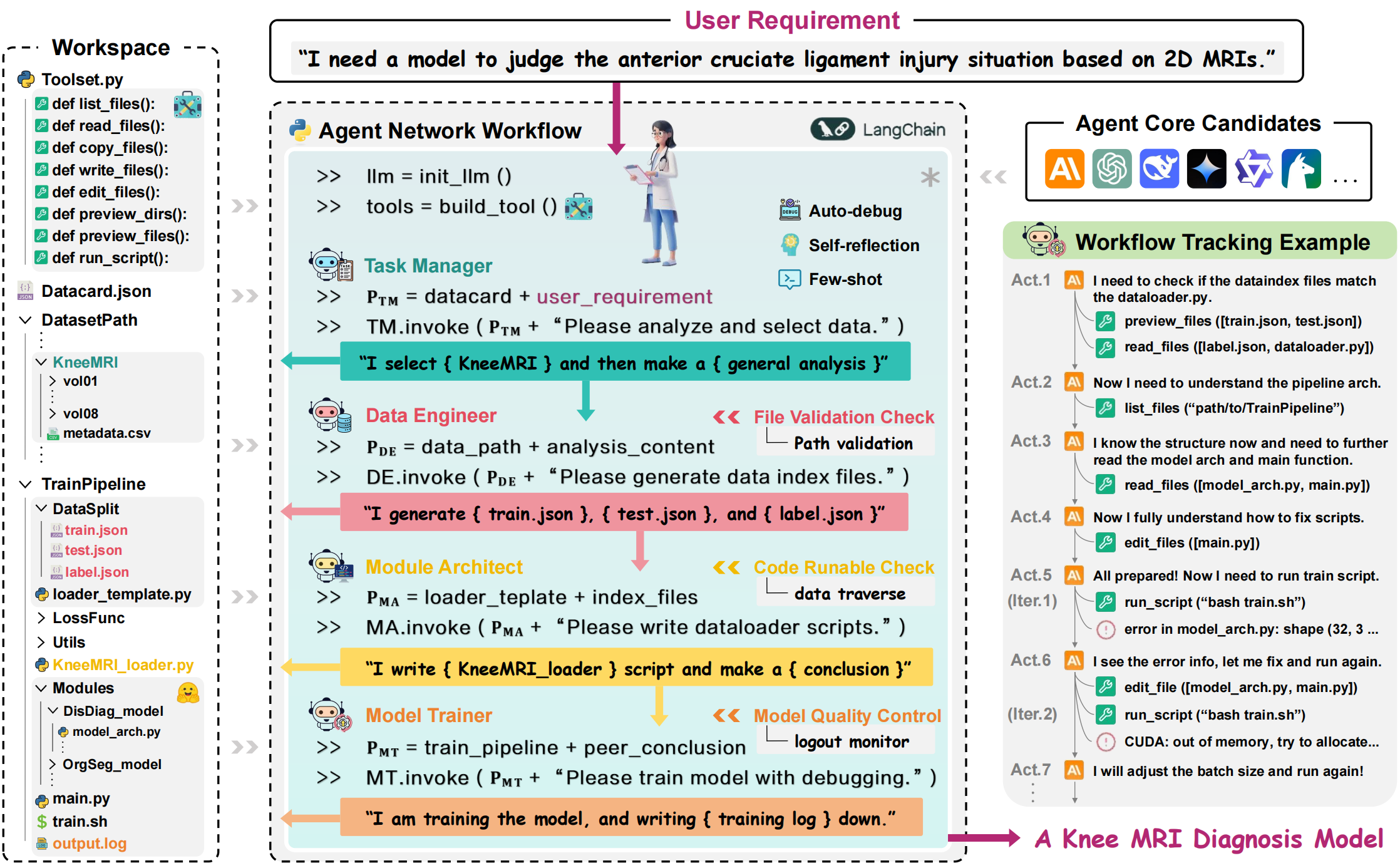 We present M³Builder, an LLM-powered multi-agent system for autonomous end-to-end medical imaging AI model training—the first to automate ML in medical imaging, lowering the threshold for clinicians to develop and apply AI models, and promoting the widespread adoption of AI tools in real clinical scenarios.